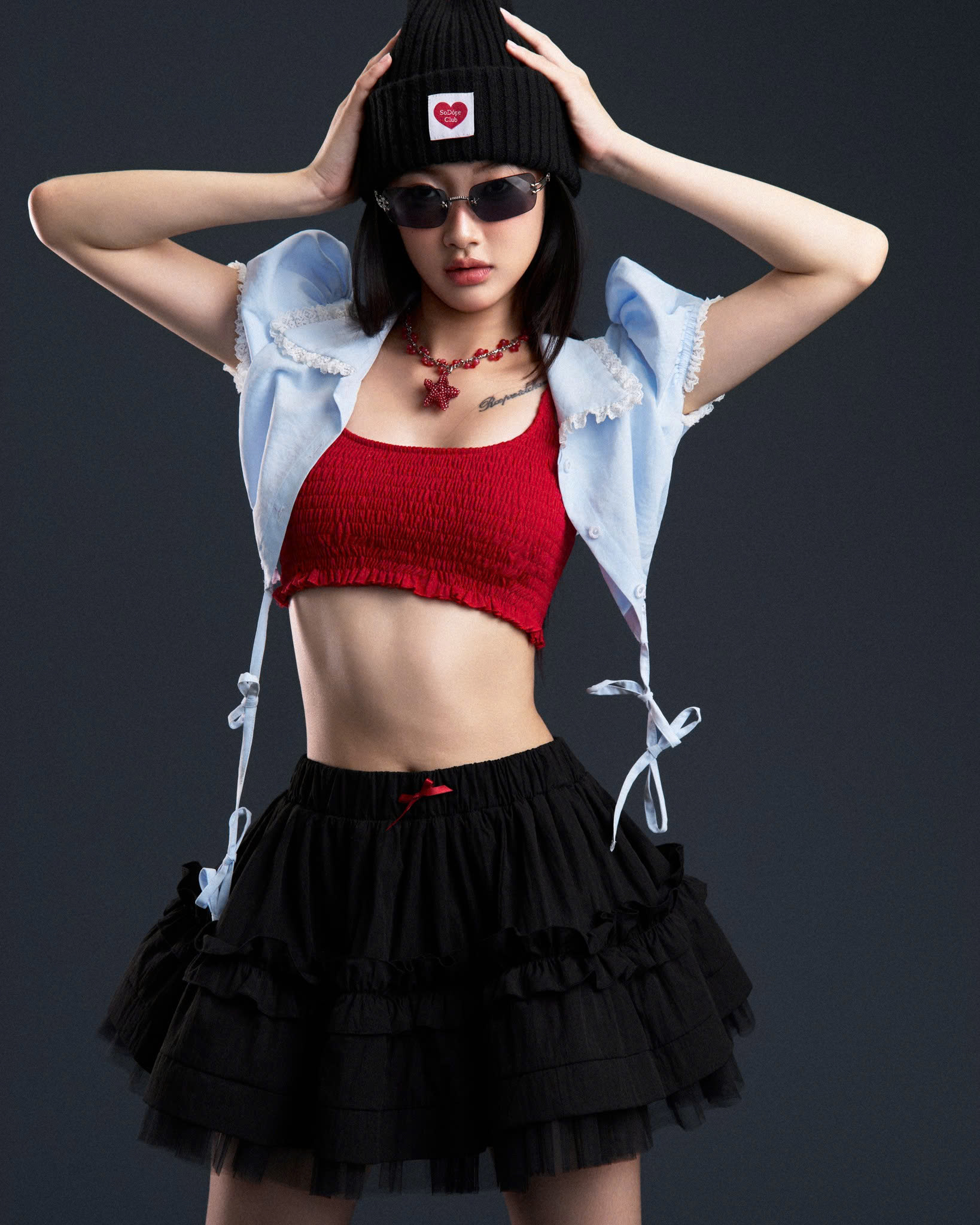 Chất vải voan tơ phối nhiều loại lưới tạo độ phồng tự nhiên, chiều dài 45cm