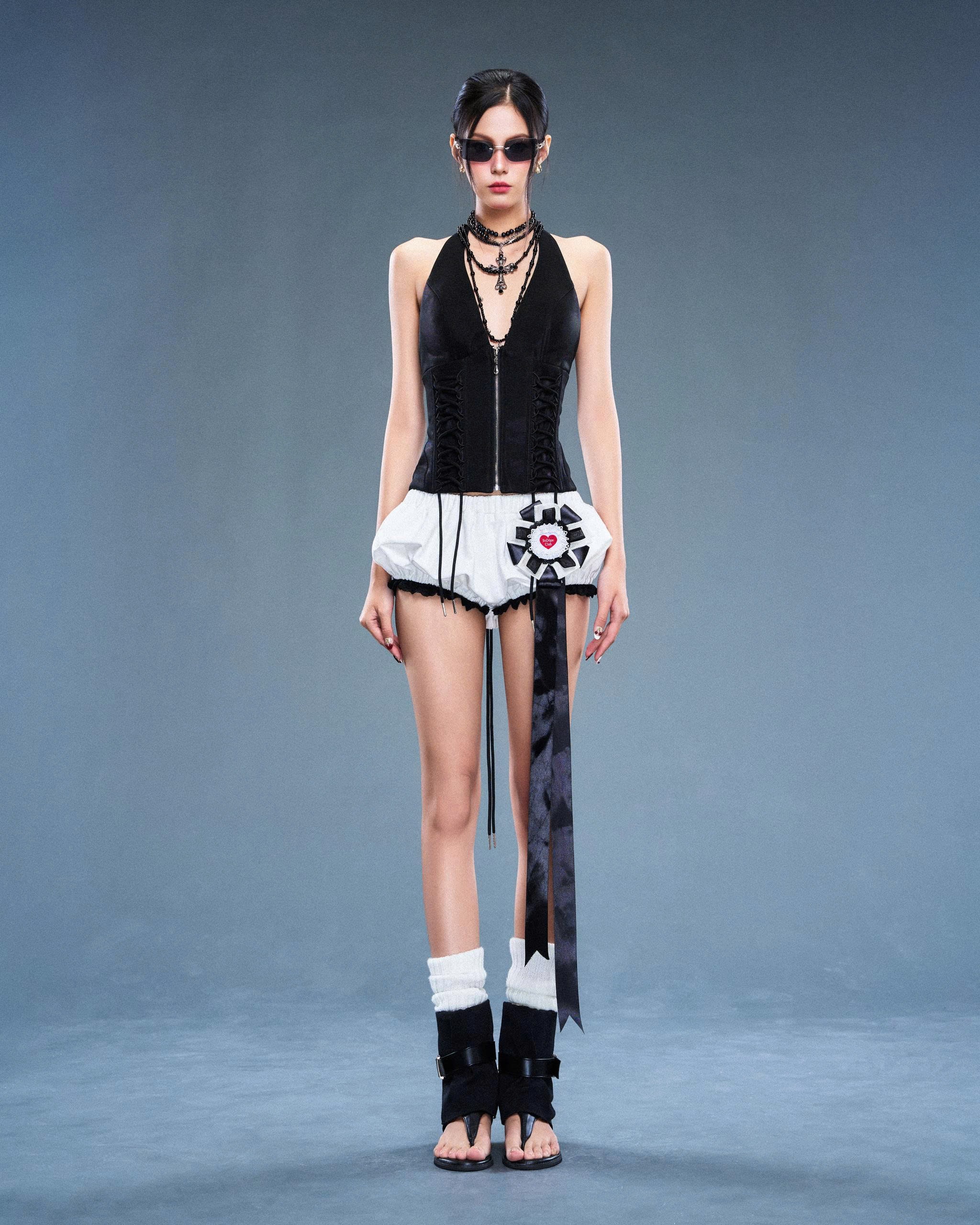 Áo corset cổ yếm đen - Black Bear Corset
