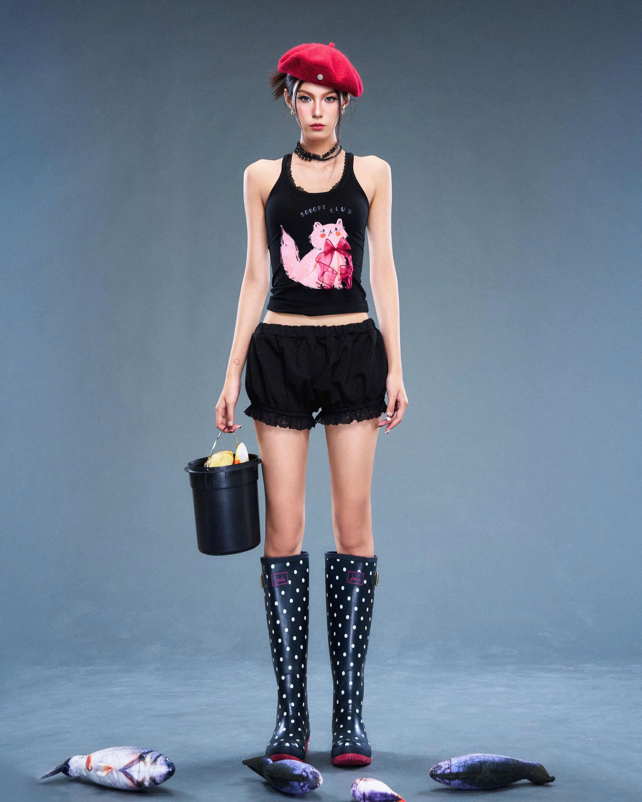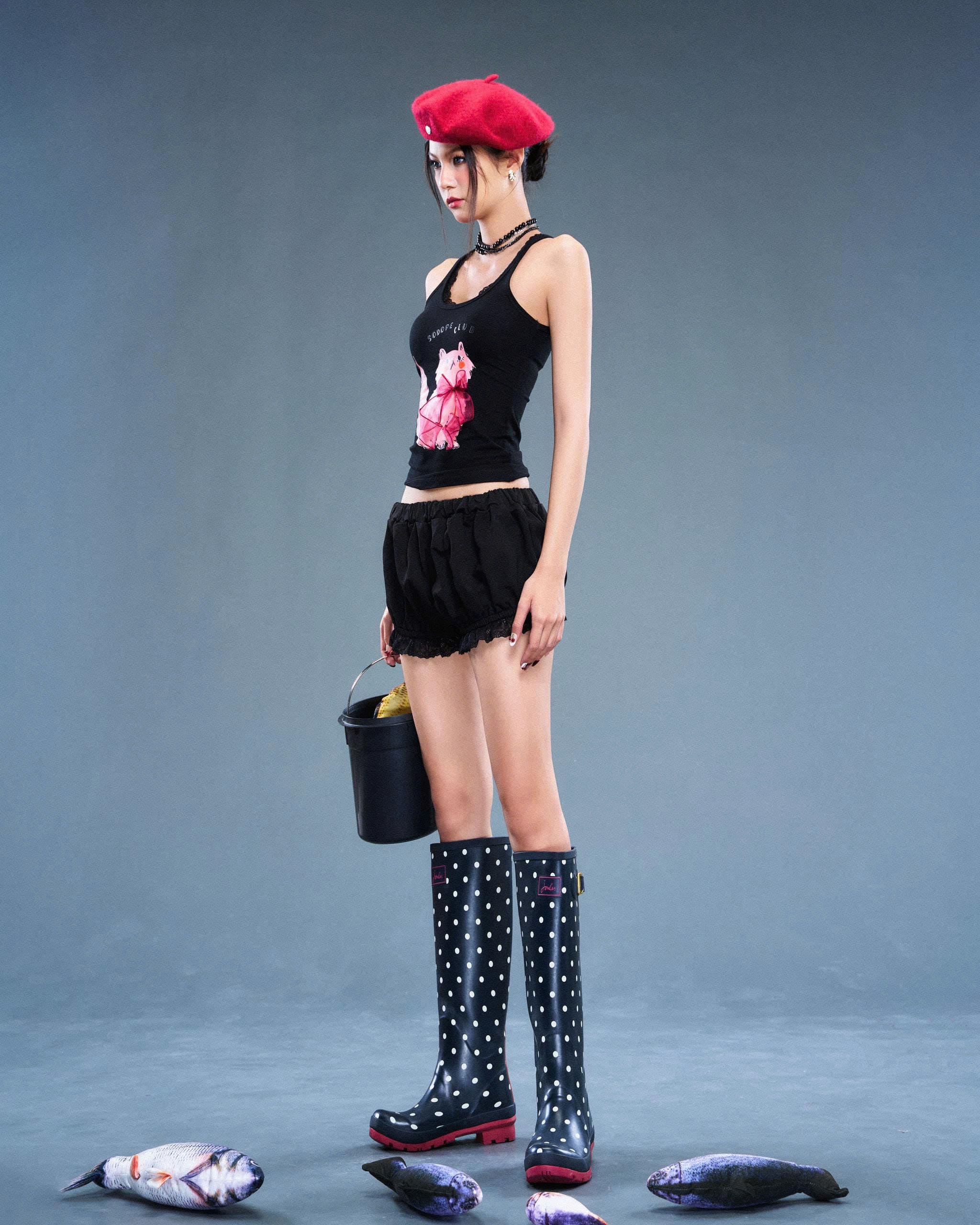 Quần bí ngắn phối ren đen - Black Crush Shorts
