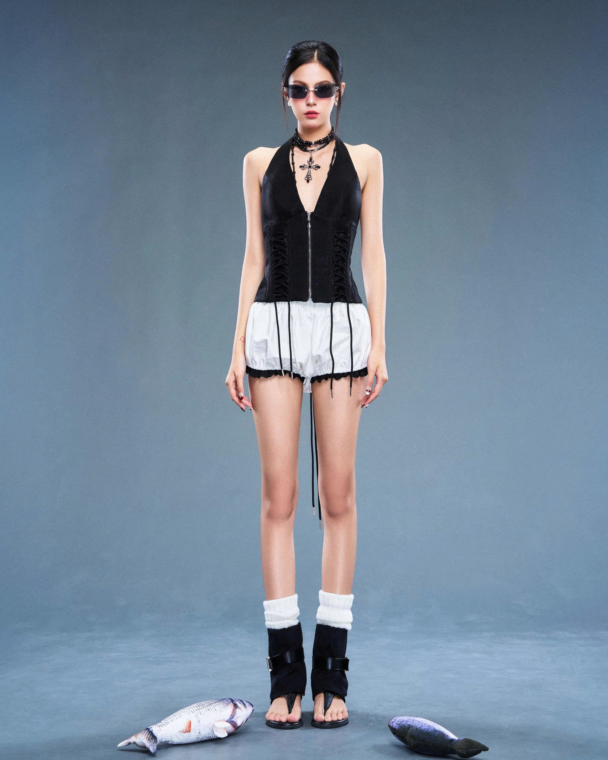 Quần bí trắng ngắn vièn ren đen - Black Lace Crush Shorts