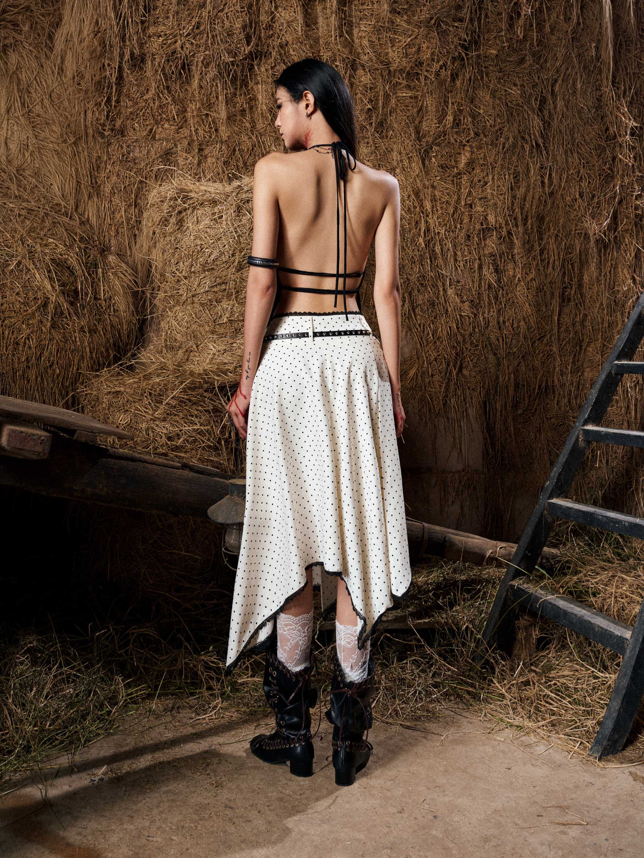 Áo cổ đổ dạng hai hai dây cột thành cổ yếm, hở lưng