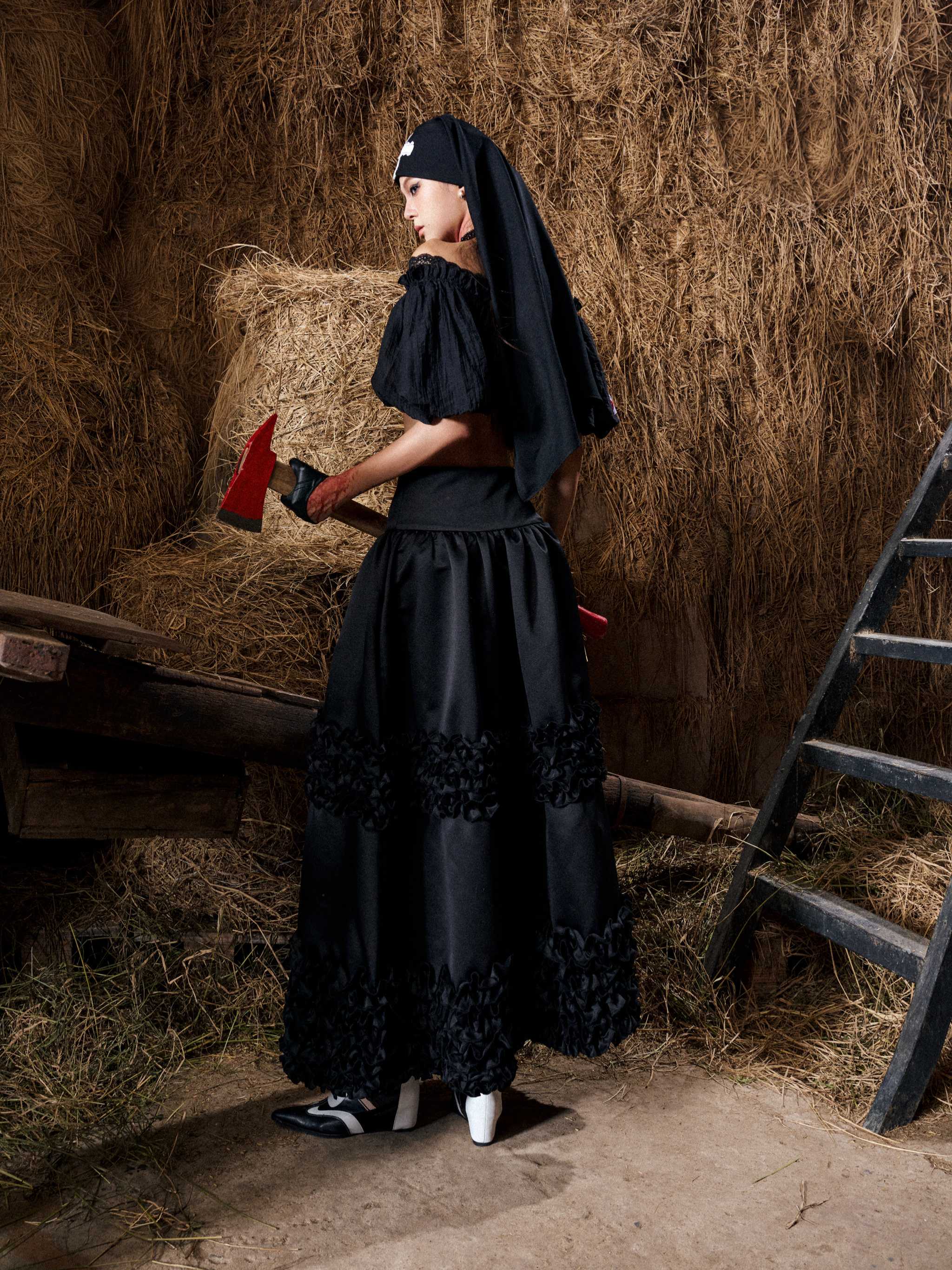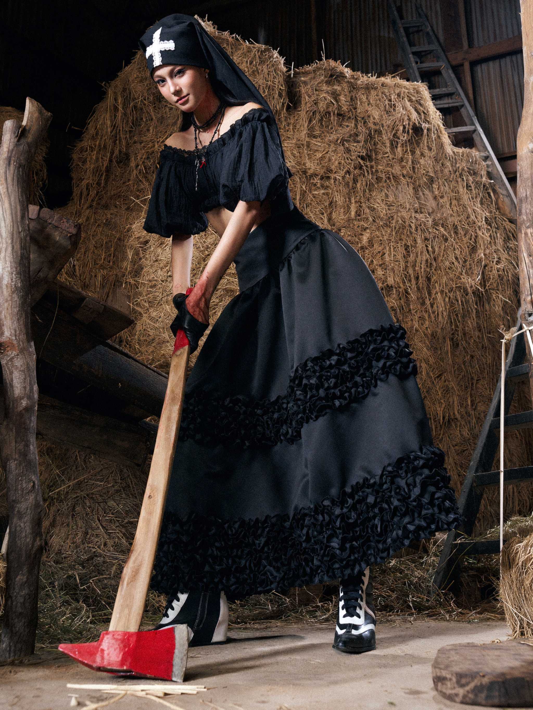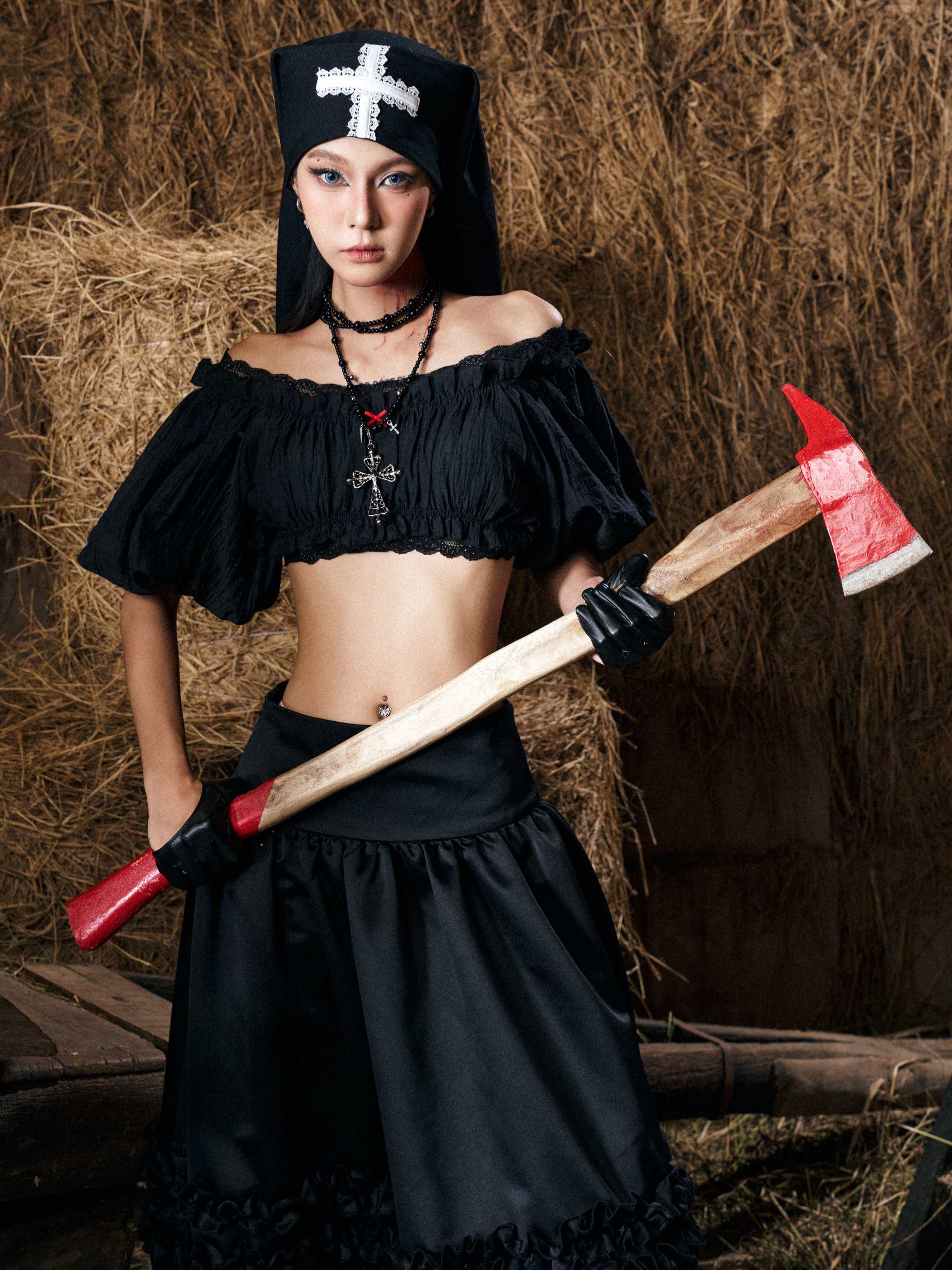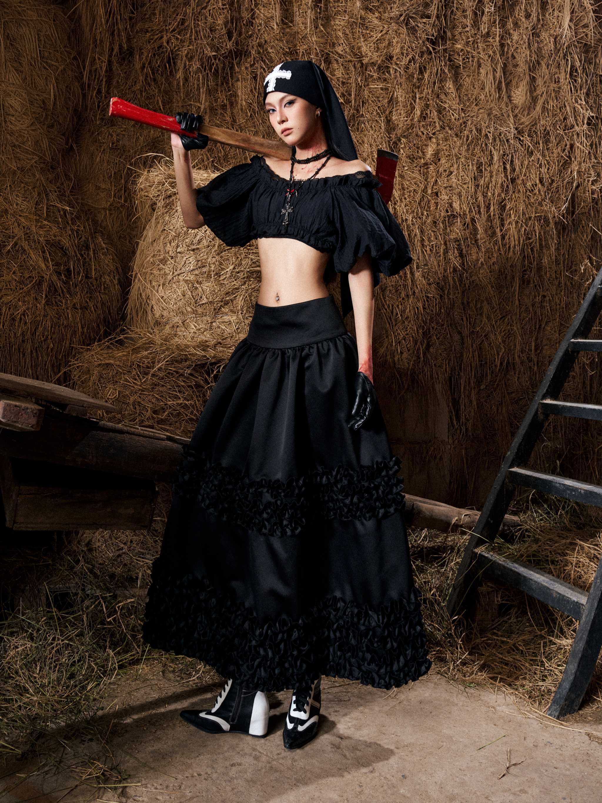 Áo voan croptop tay phồng phối ren đen - Black Wetsy Top