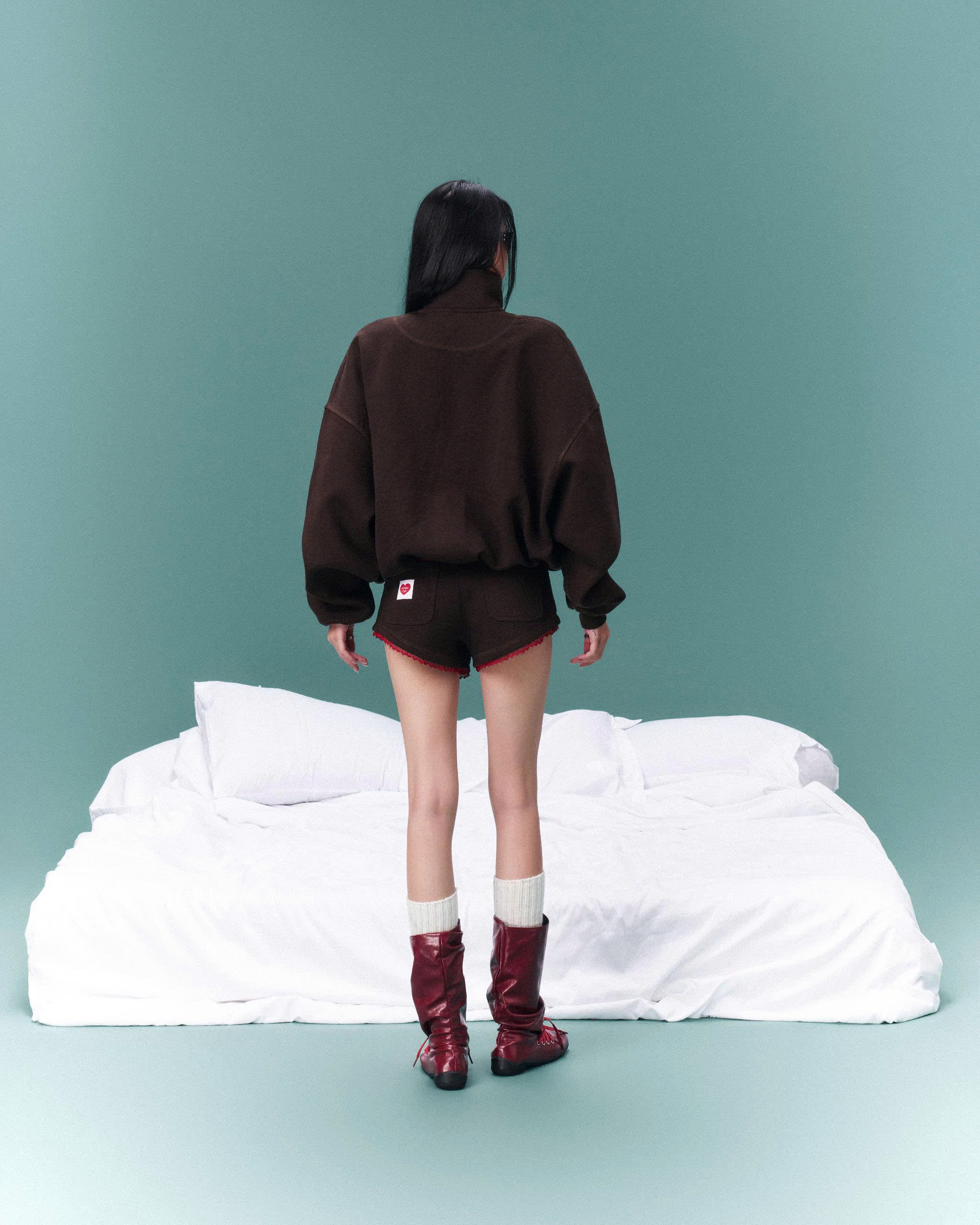 Áo sweater nỉ nửa khóa kéo form boxy - Brown Quarter Zip Sweater