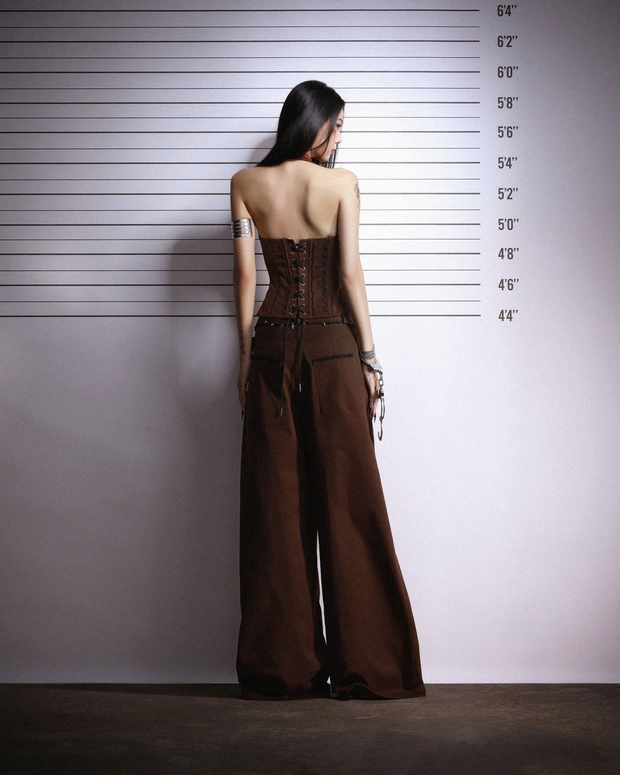 Quần dài ống rộng nâu phối ren - Brown Shark Pants