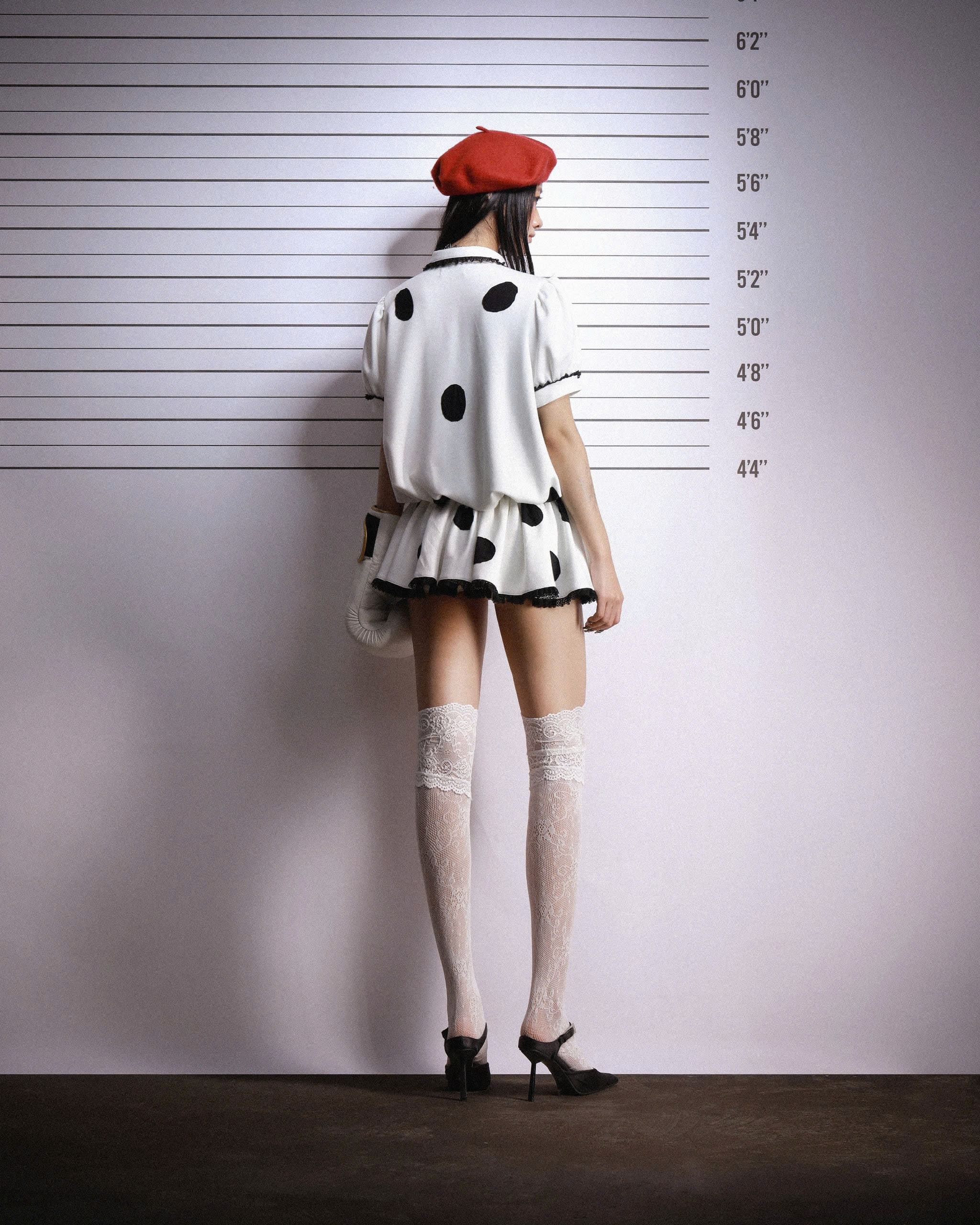 Đầm ngắn cổ polo dây rút chấm bi - Cuffia Dress