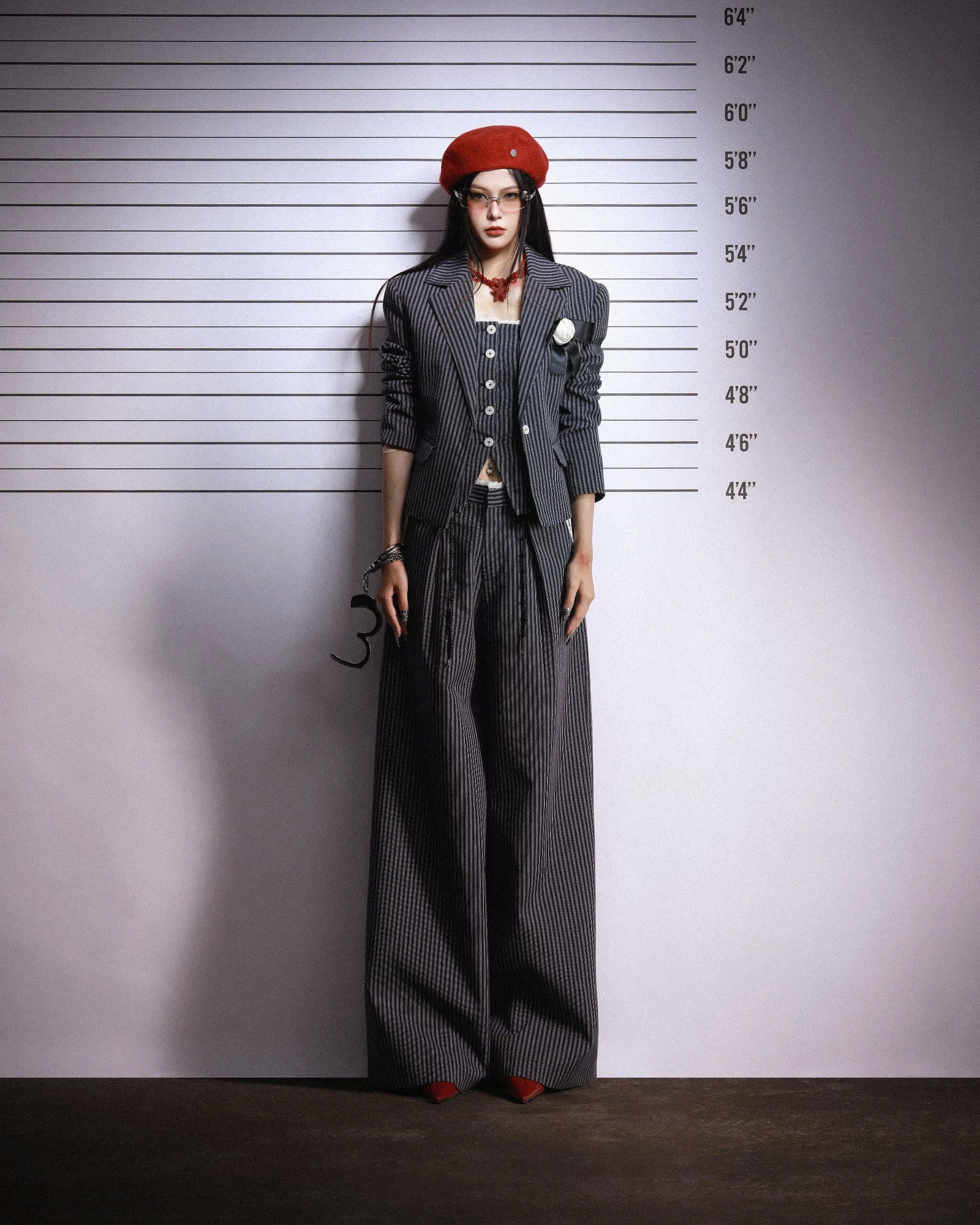Áo corset cúp ngực sọc xám giả gi-lê - Felon Corset