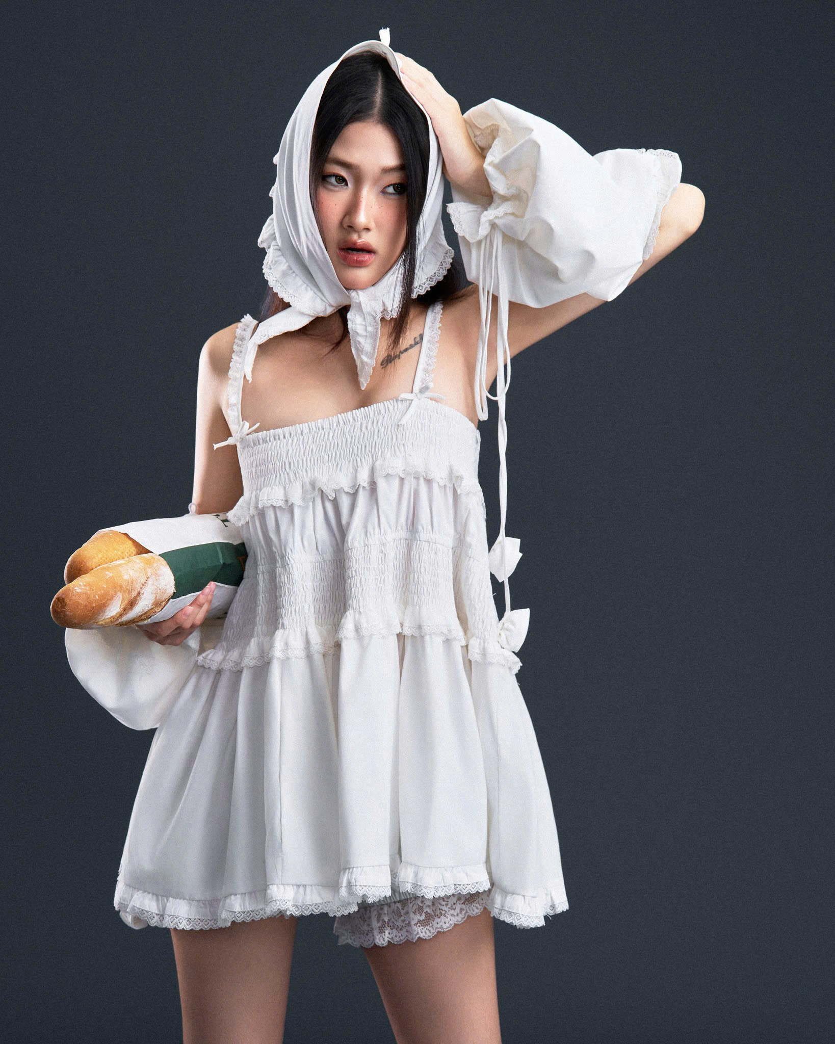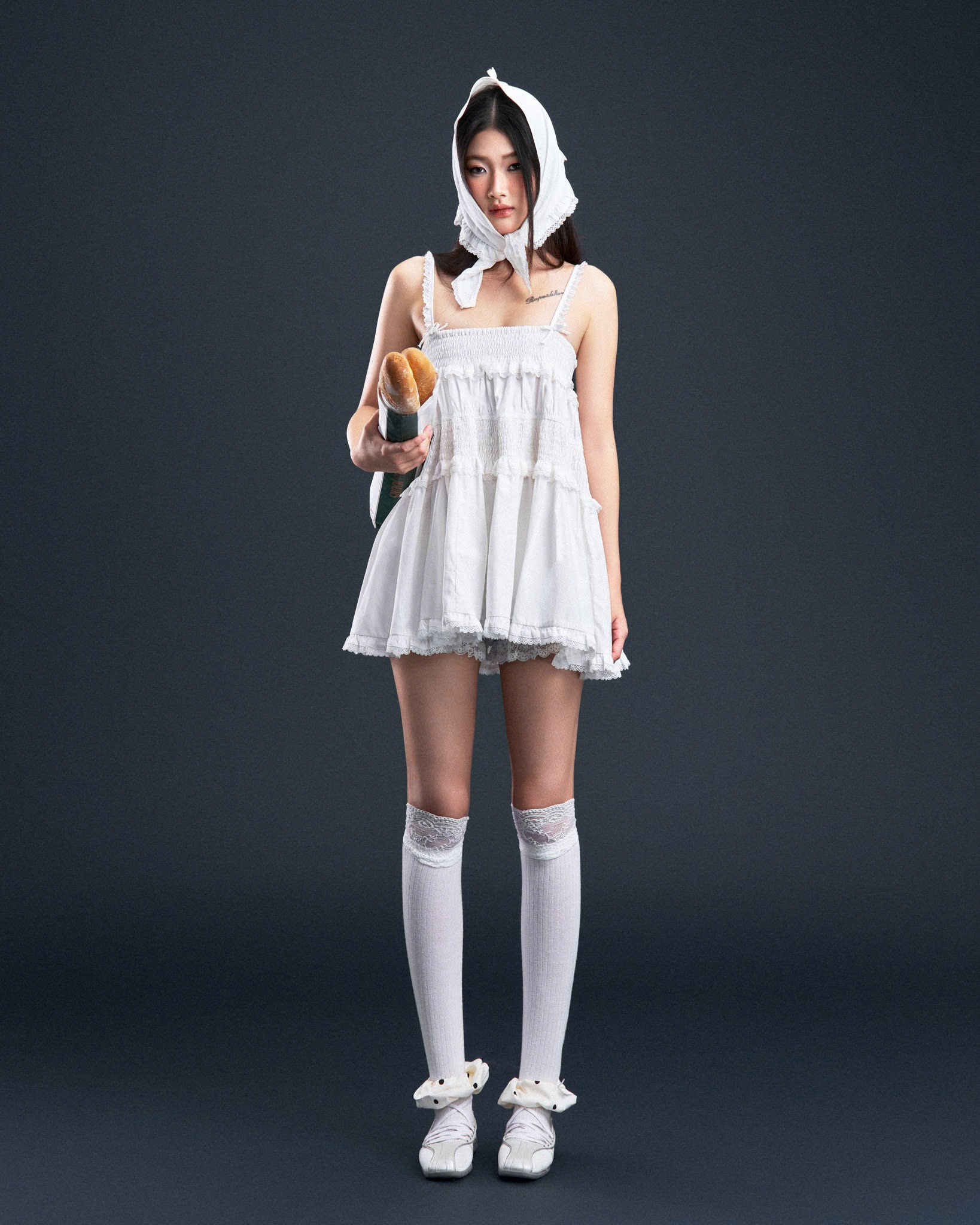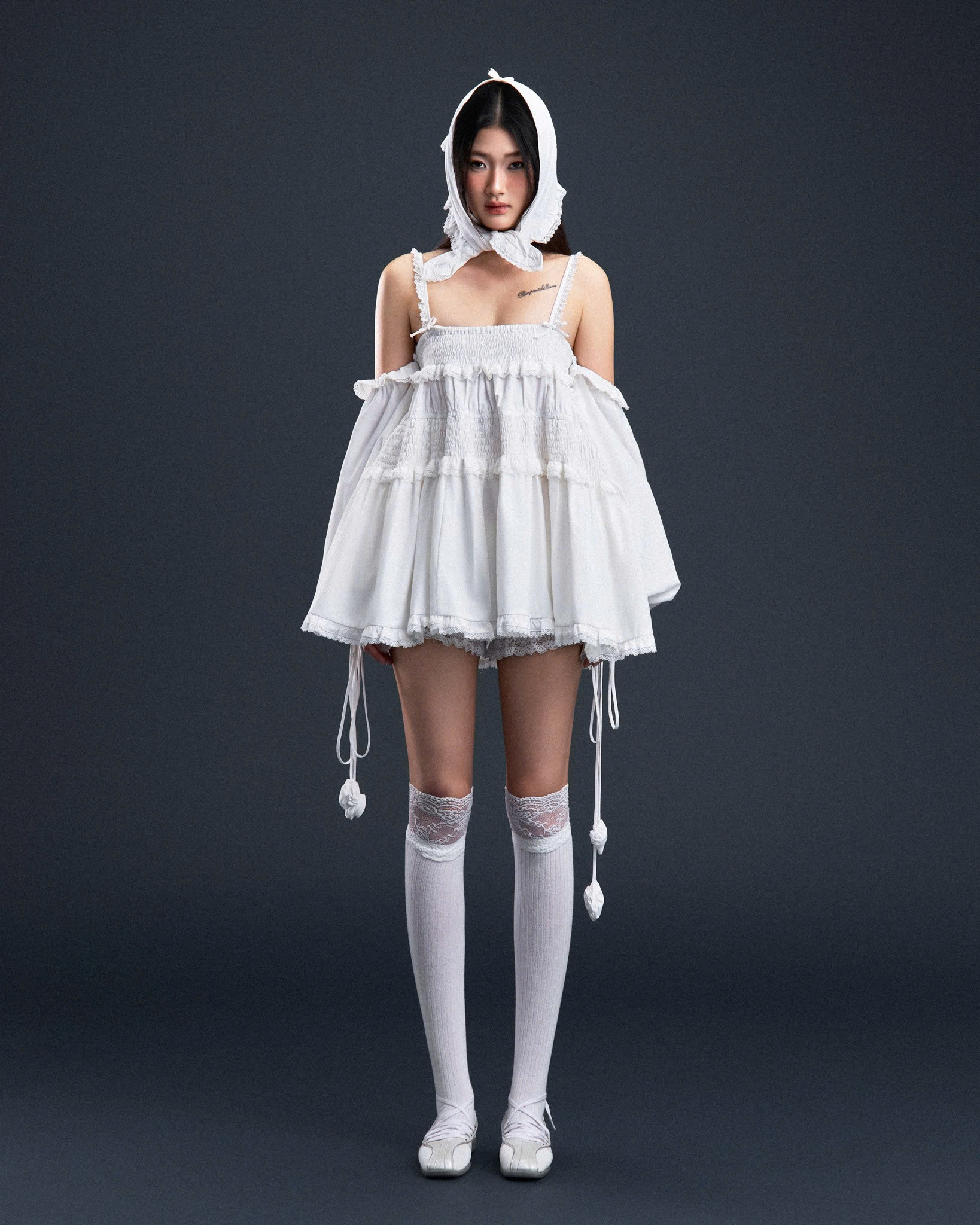 Đầm babydoll ngắn hai dây dây trắng tay rời - Floria Dress