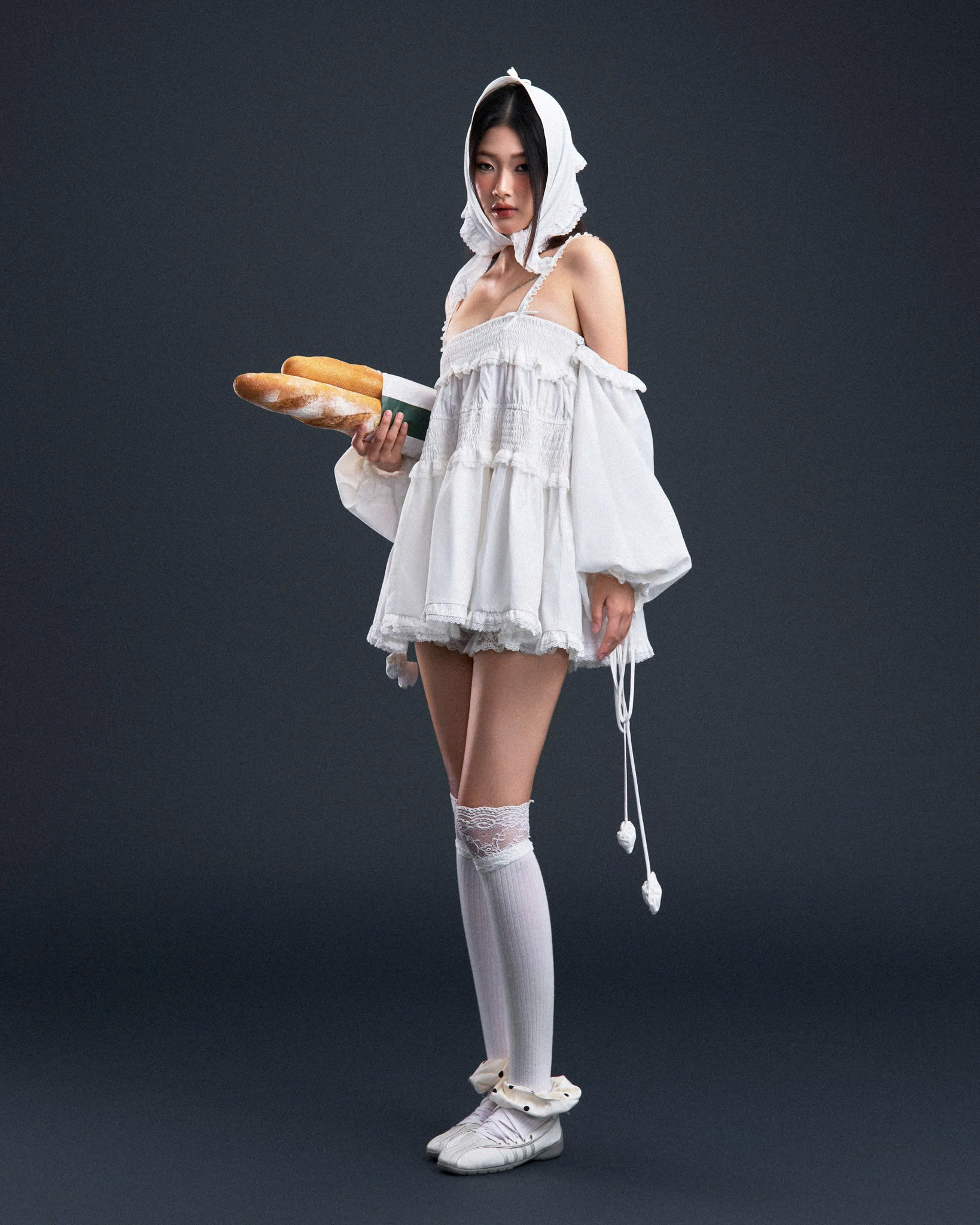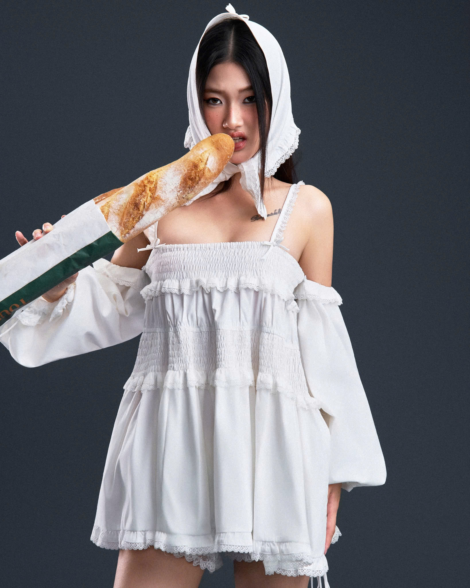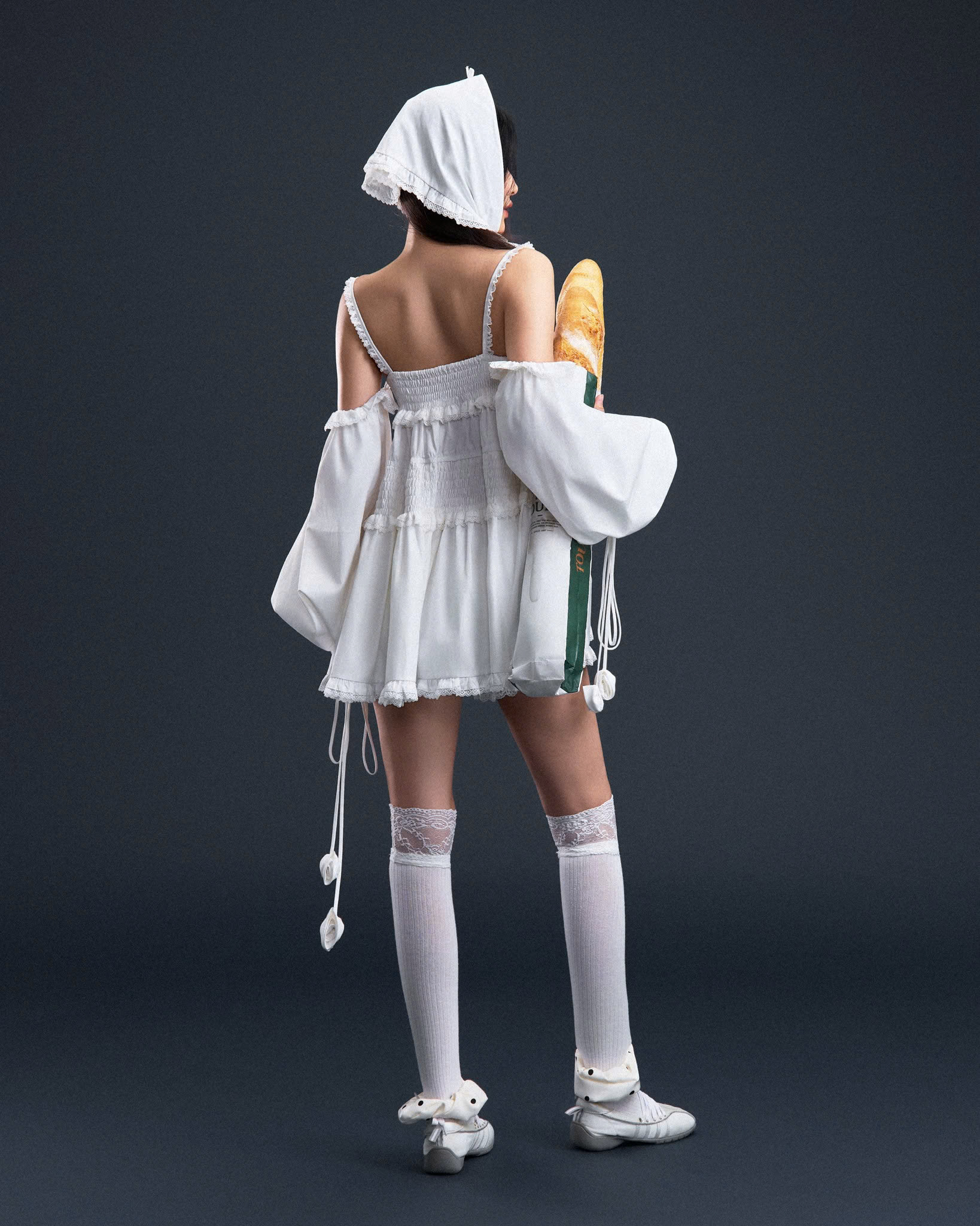Đầm 2 dây trễ vai form bí phồng, tay phồng dài (có thể tháo rời phần tay)