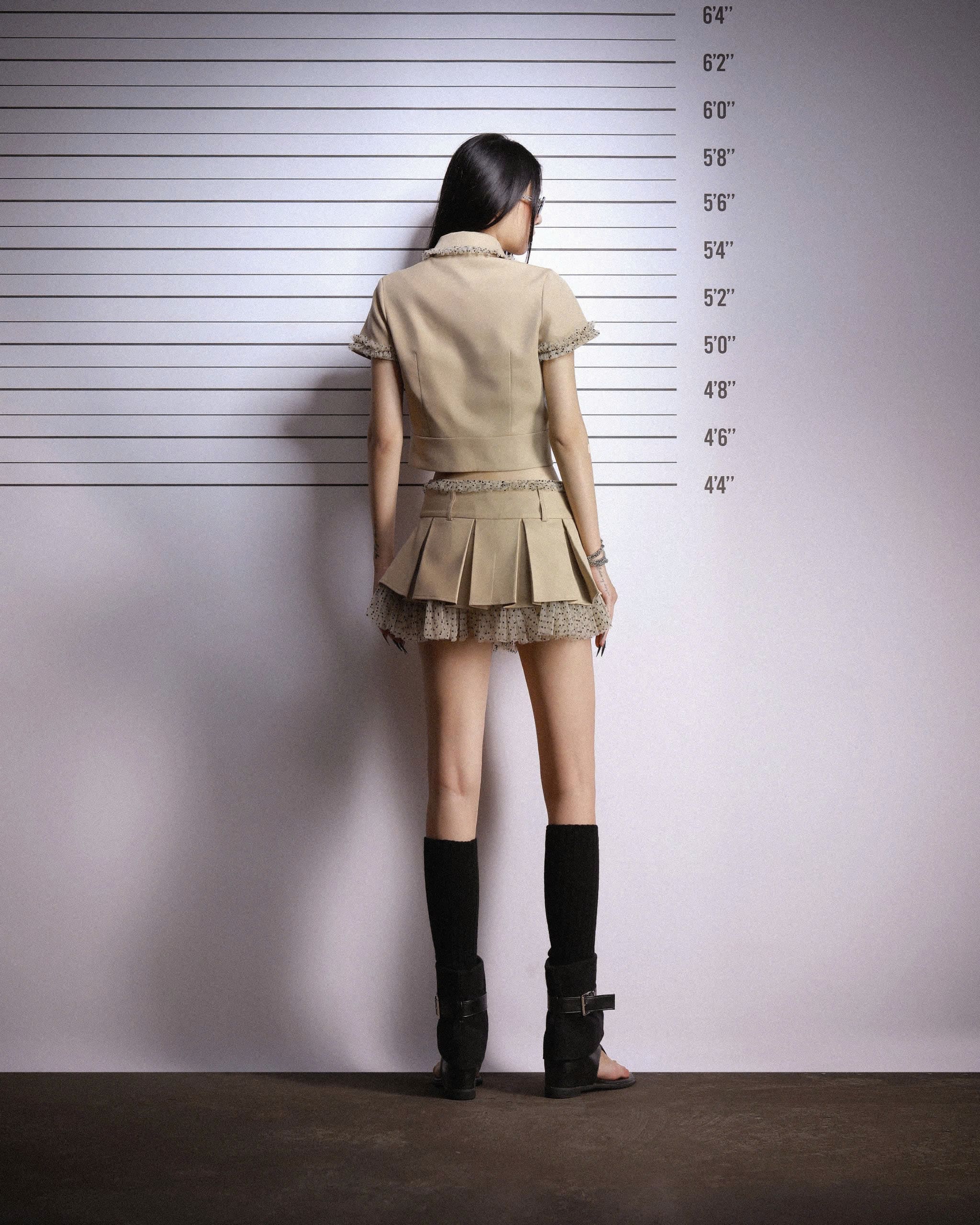 Chân váy ngắn kaki kem phối lưới nâu chấm bi - Karan Skirt