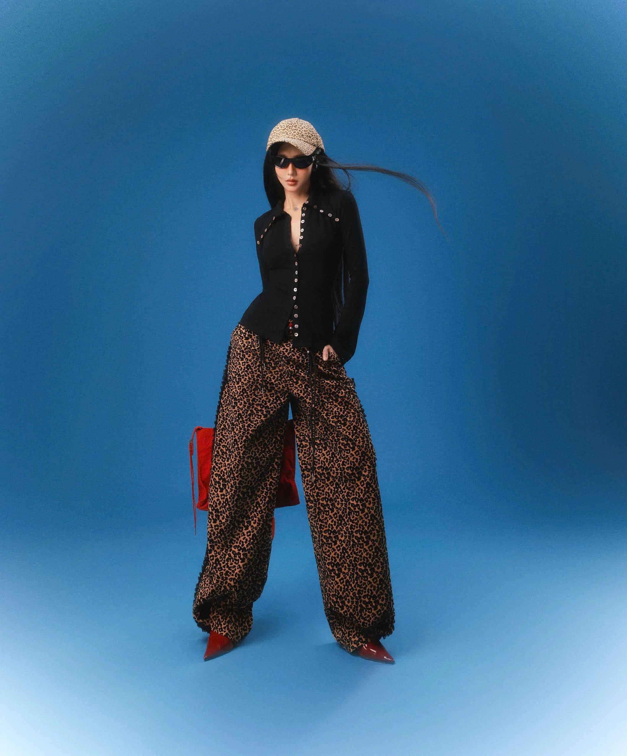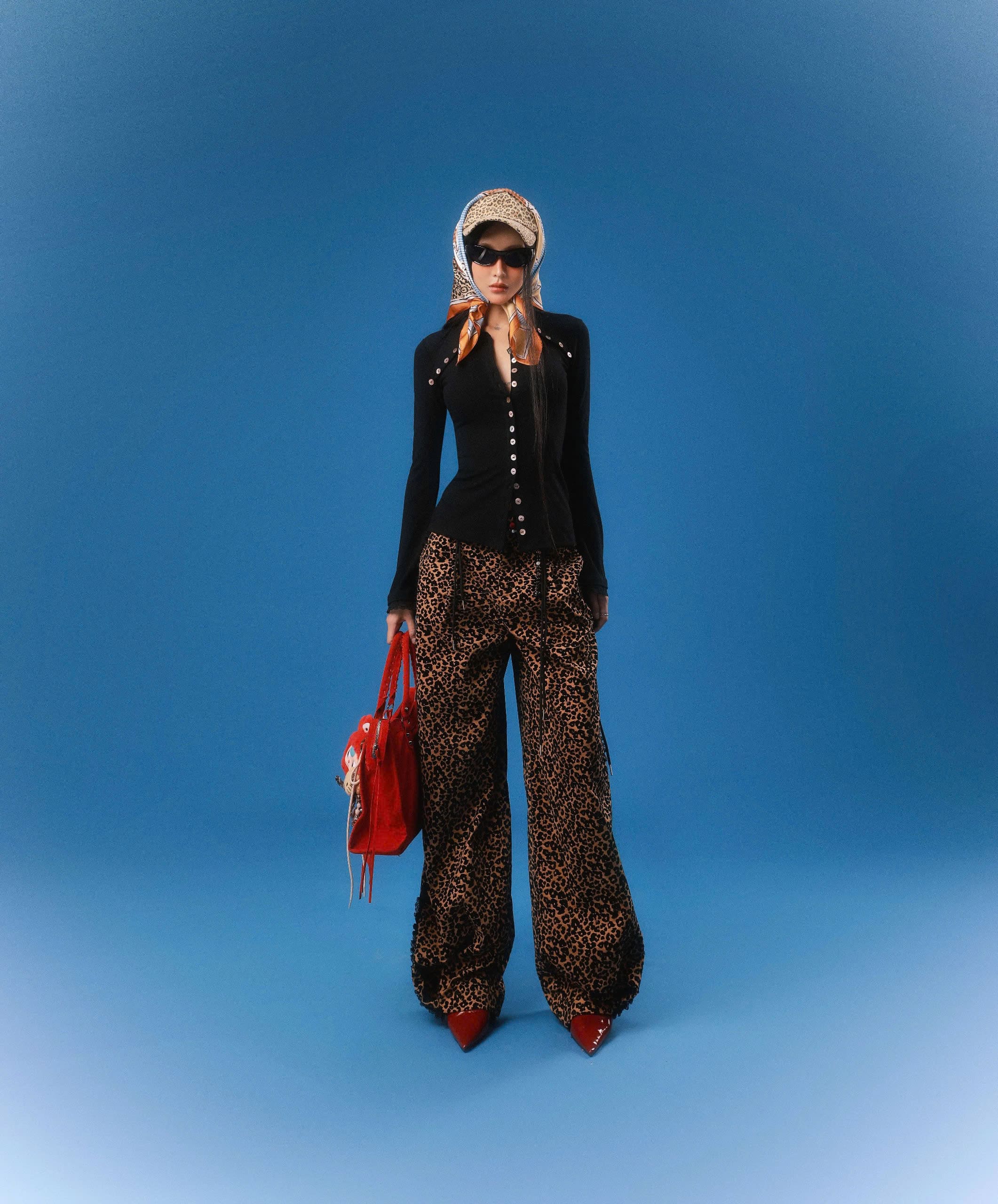 Quần dài ống rộng nâu đậm họa tiết beo - Leo Pants