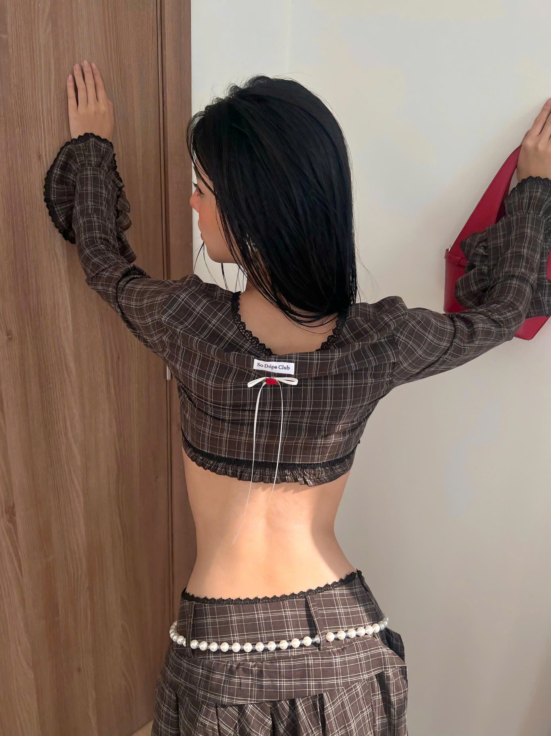 Áo croptop 2 dây sọc caro - Noire Croptop