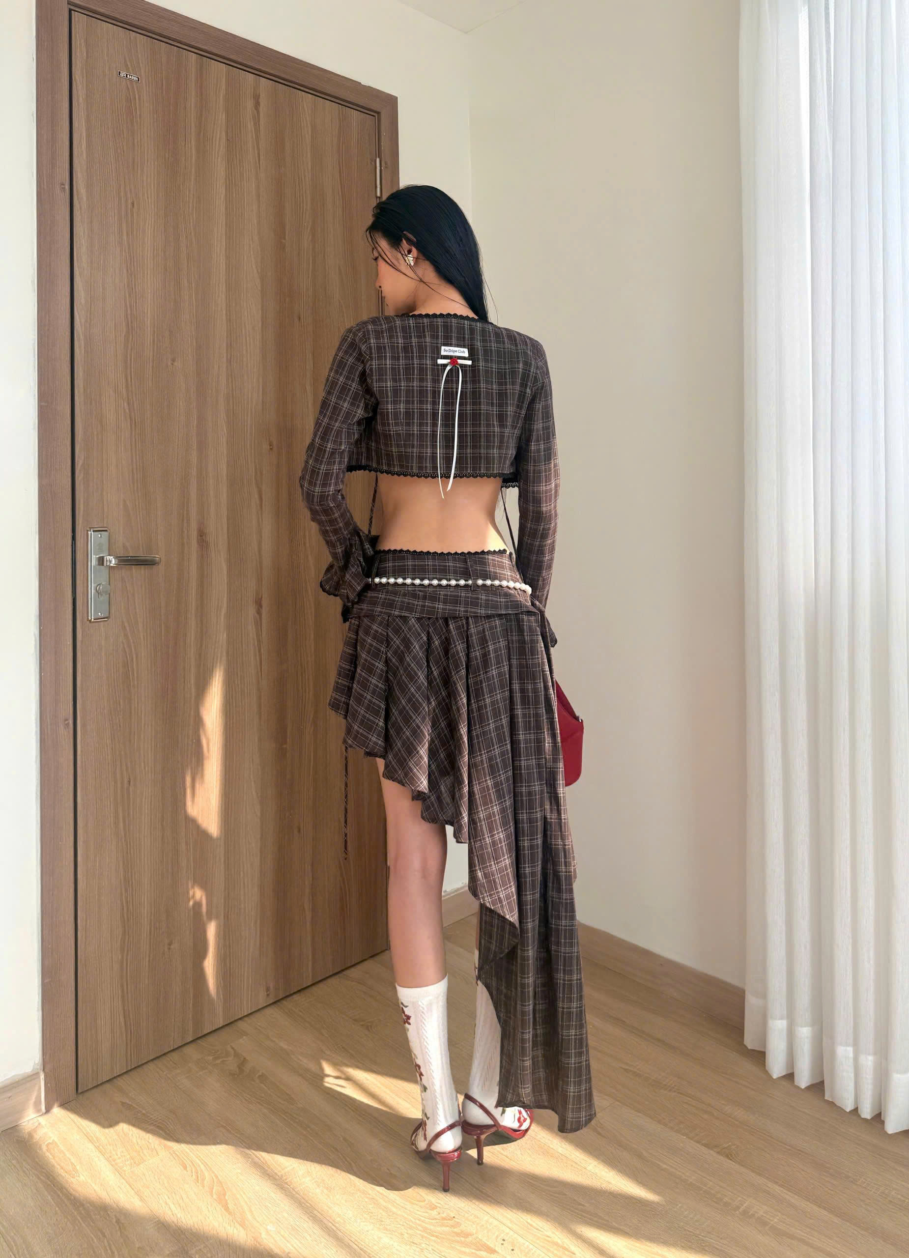 Chân váy ngắn vạt xéo sọc caro phối ren - Noire Skirt