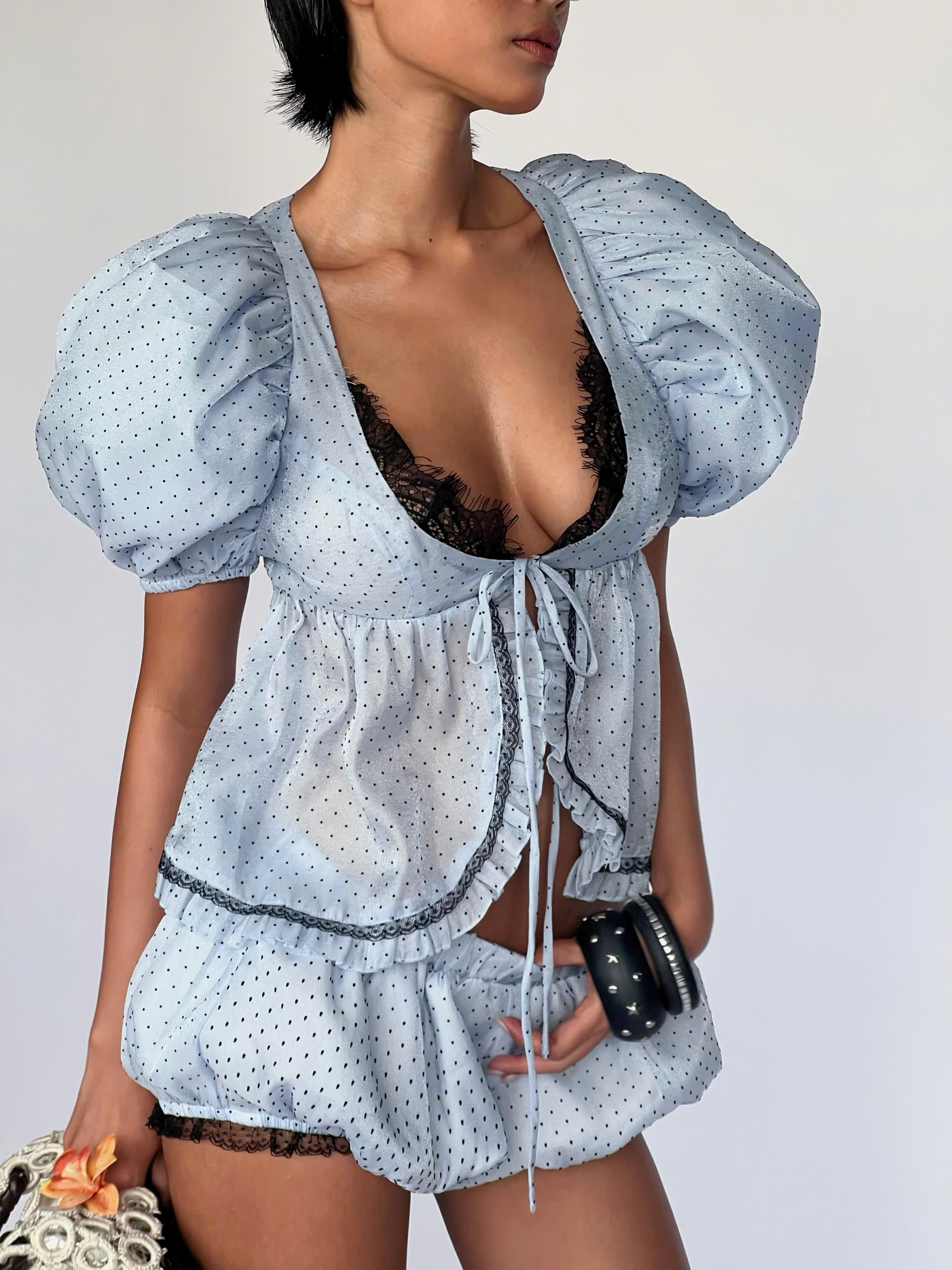 Quần bí ngắn xanh chấm bi - Pepple Shorts