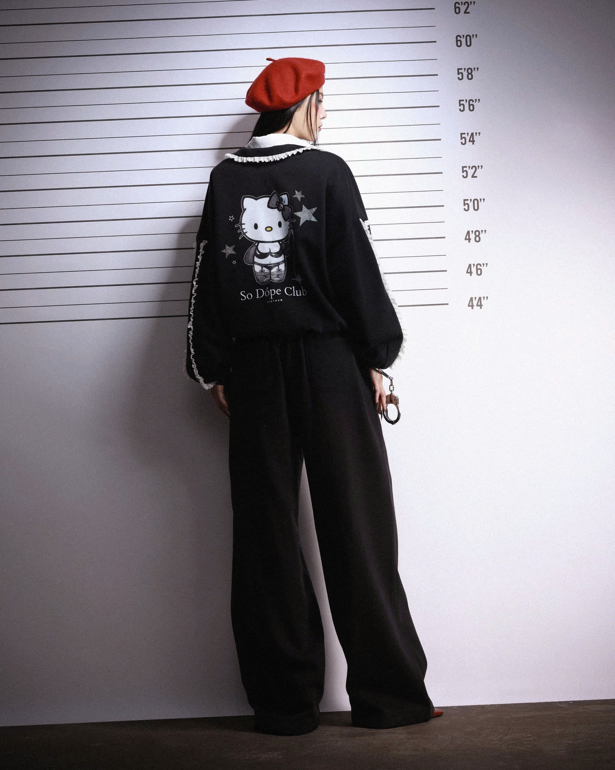 Quần nỉ dài ống rộng đen sọc ren trắng - Rebel Pants