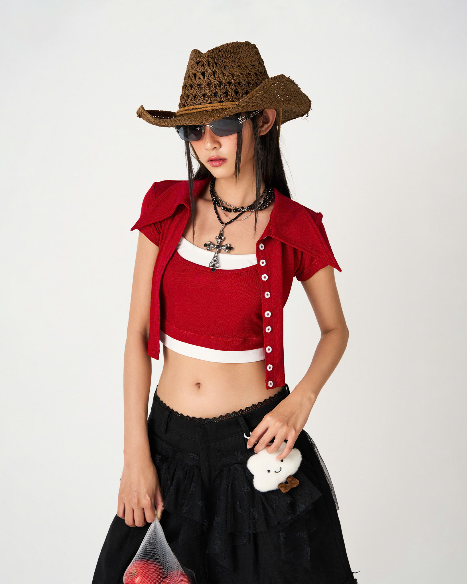 Áo thun croptop đỏ cổ sơ mi - Red Seal Top