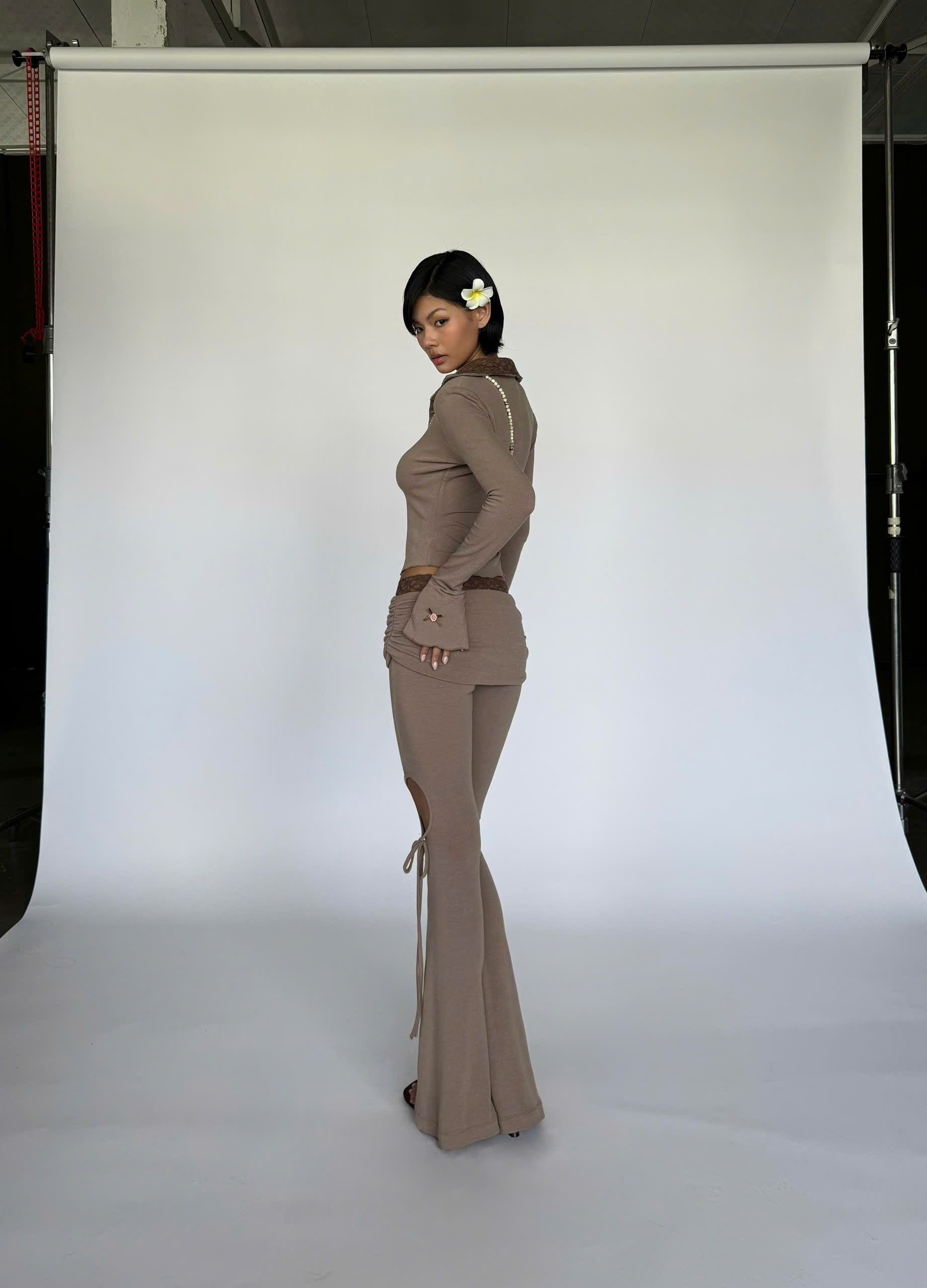 Quần thun dài ống loe xẻ giữa chân thắt nơ - Sandy Pants