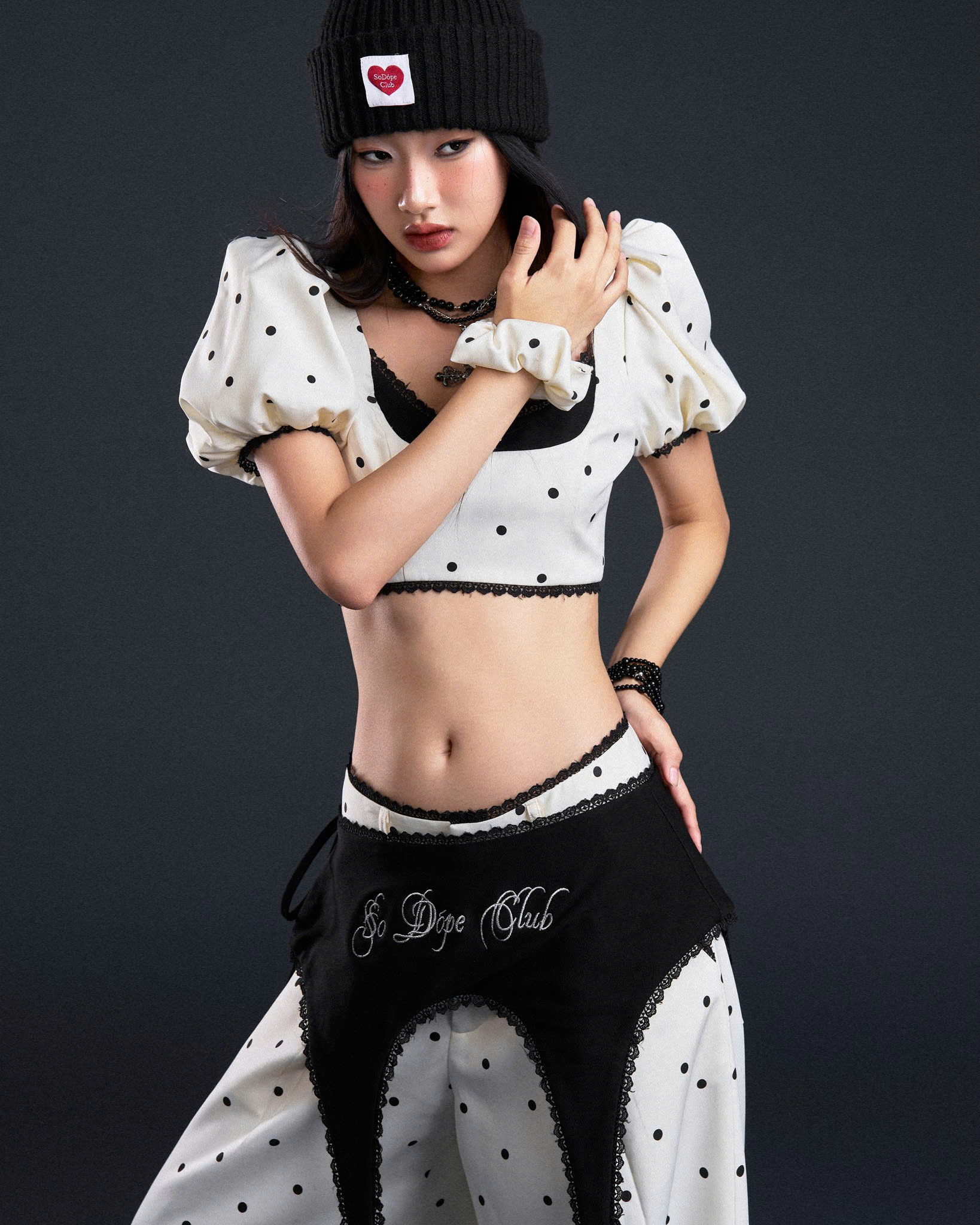 Áo brallette đen phối ren đen thêu logo "So Dópe Club"