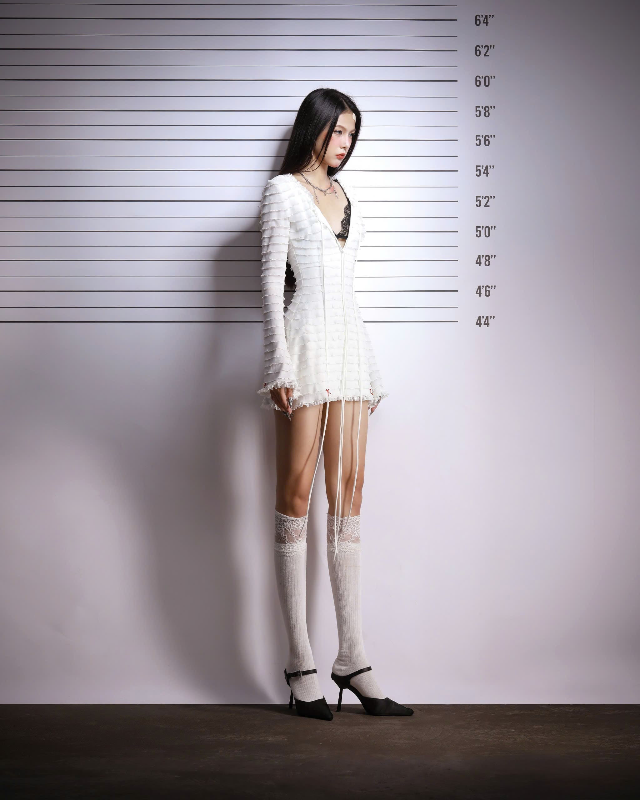 Đầm thun ốm ngắn trắng tay dài cổ V - Selina Dress