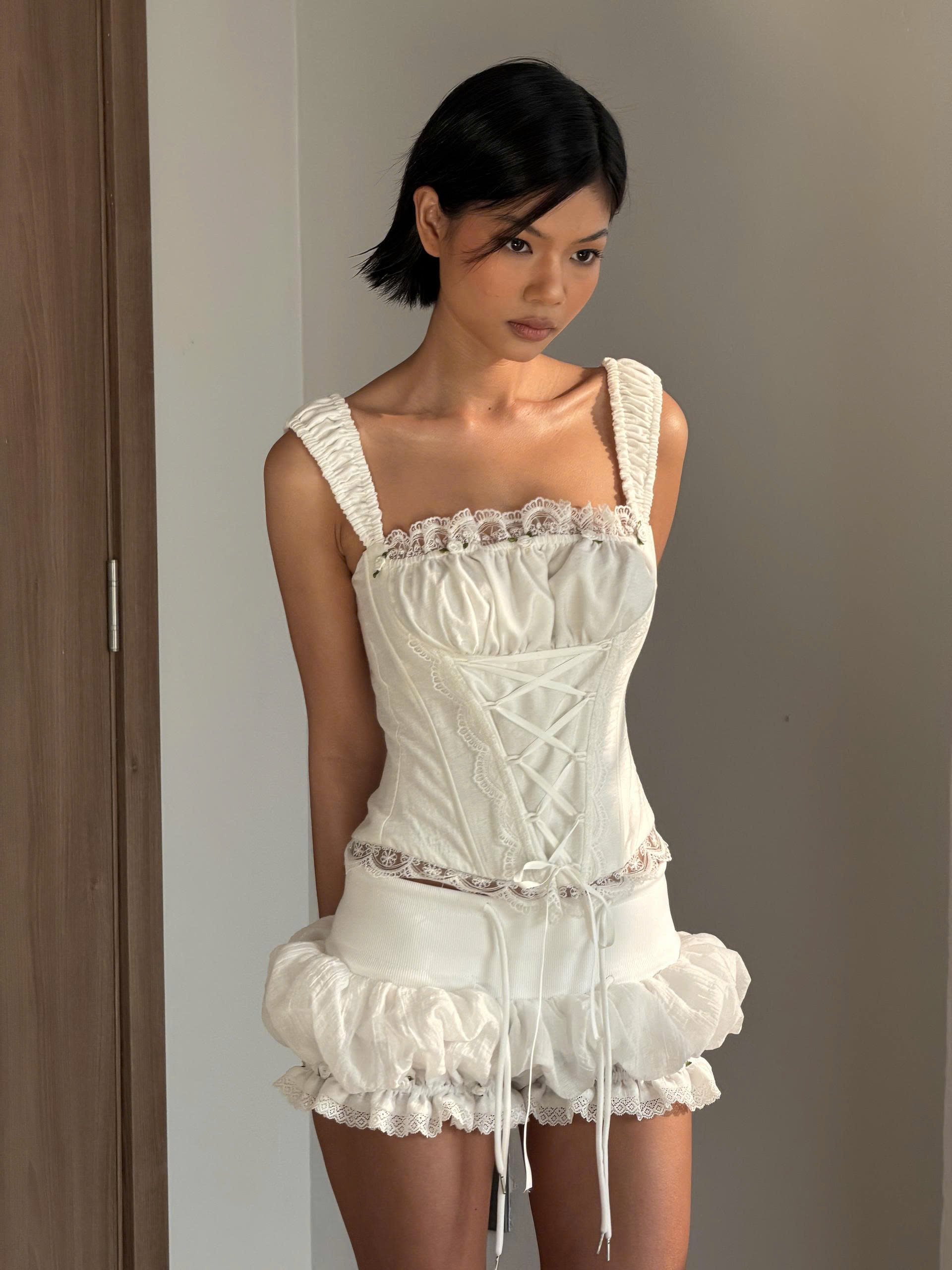 Quần bí ngắn trắng phối ren - Shimmer Shorts