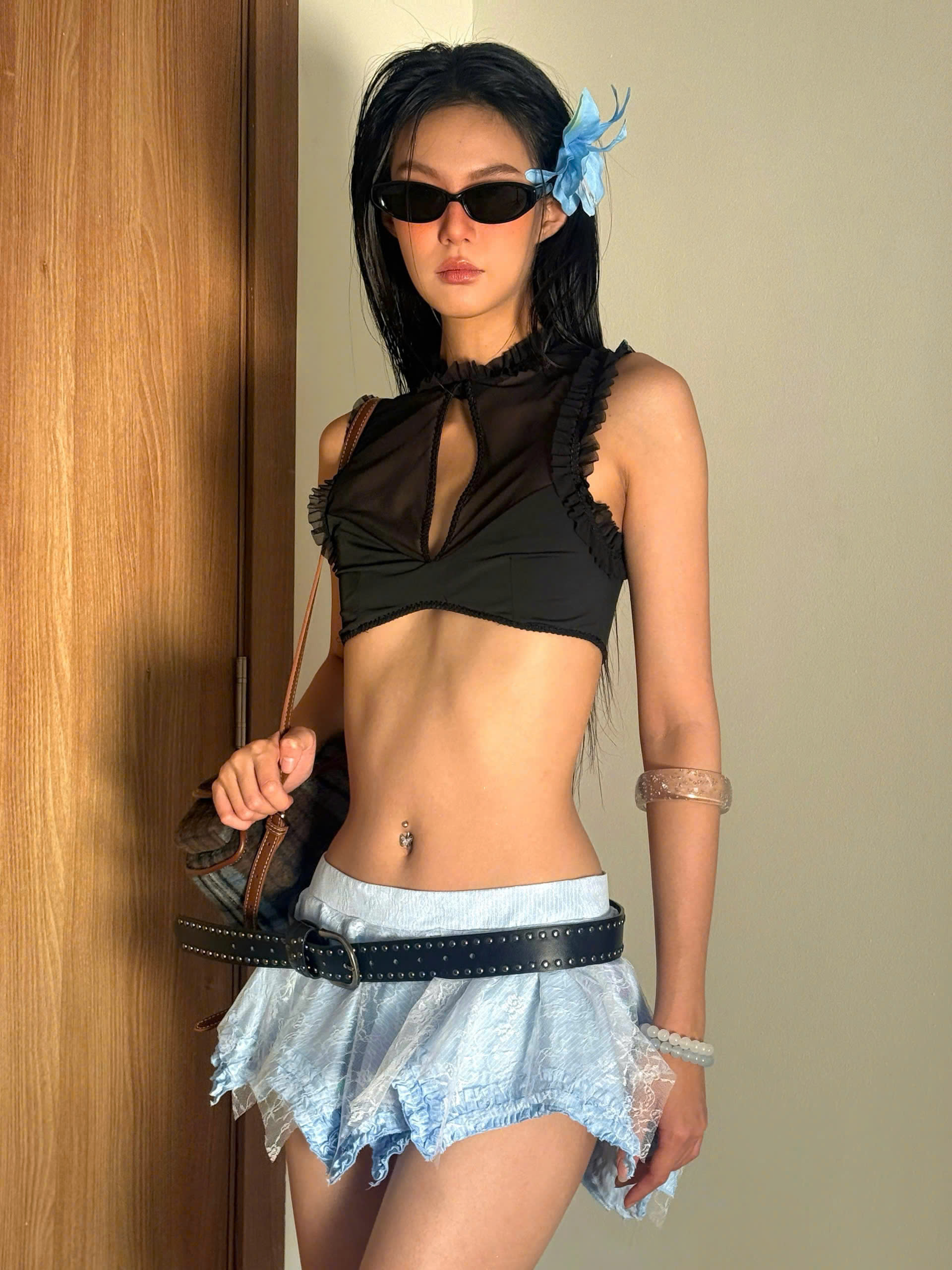 Chân váy ngắn xanh dương xòe nhẹ phối ren - Sia Skirt