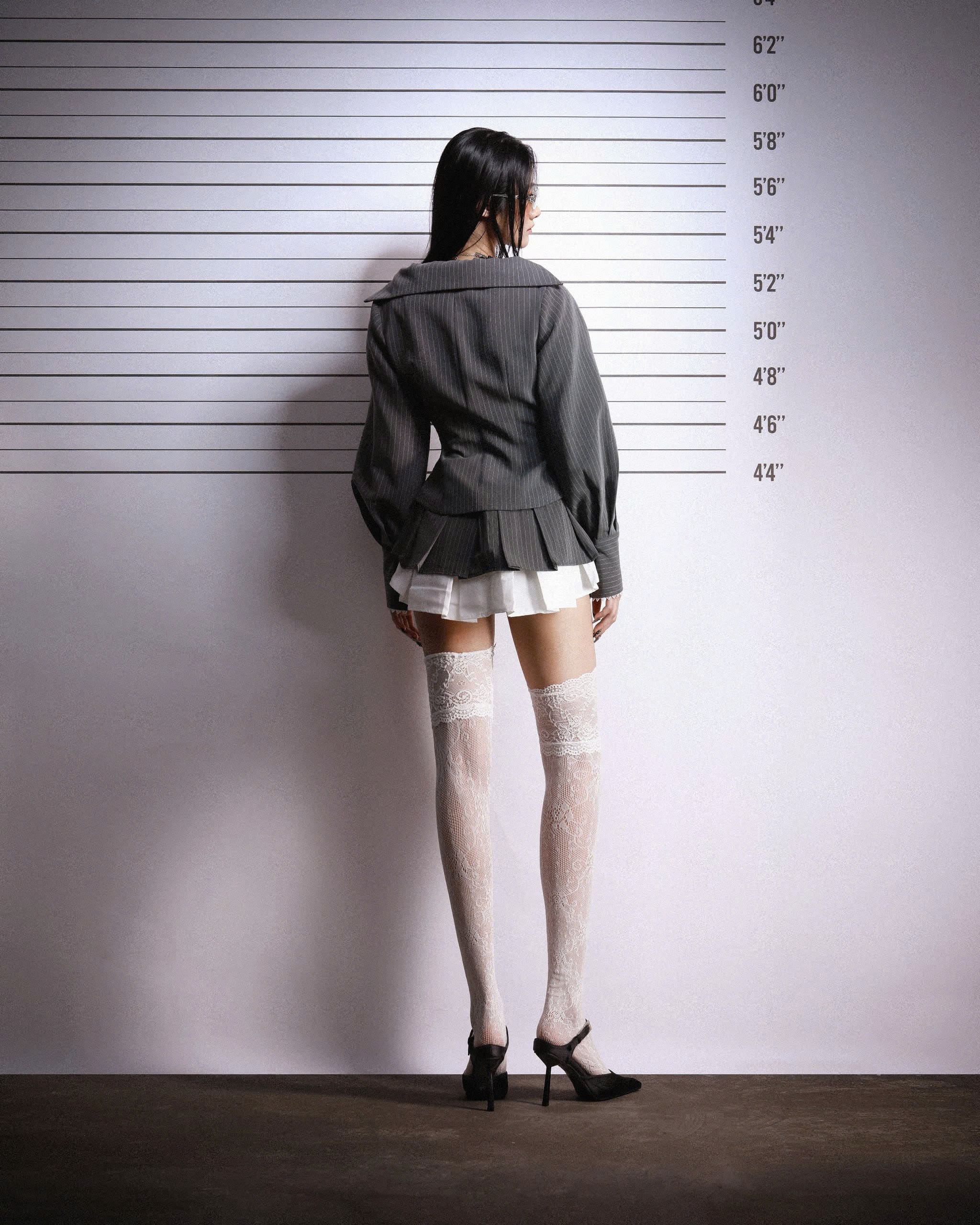 Chân váy ngắn xếp ly xám phối ren - Koala Skirt