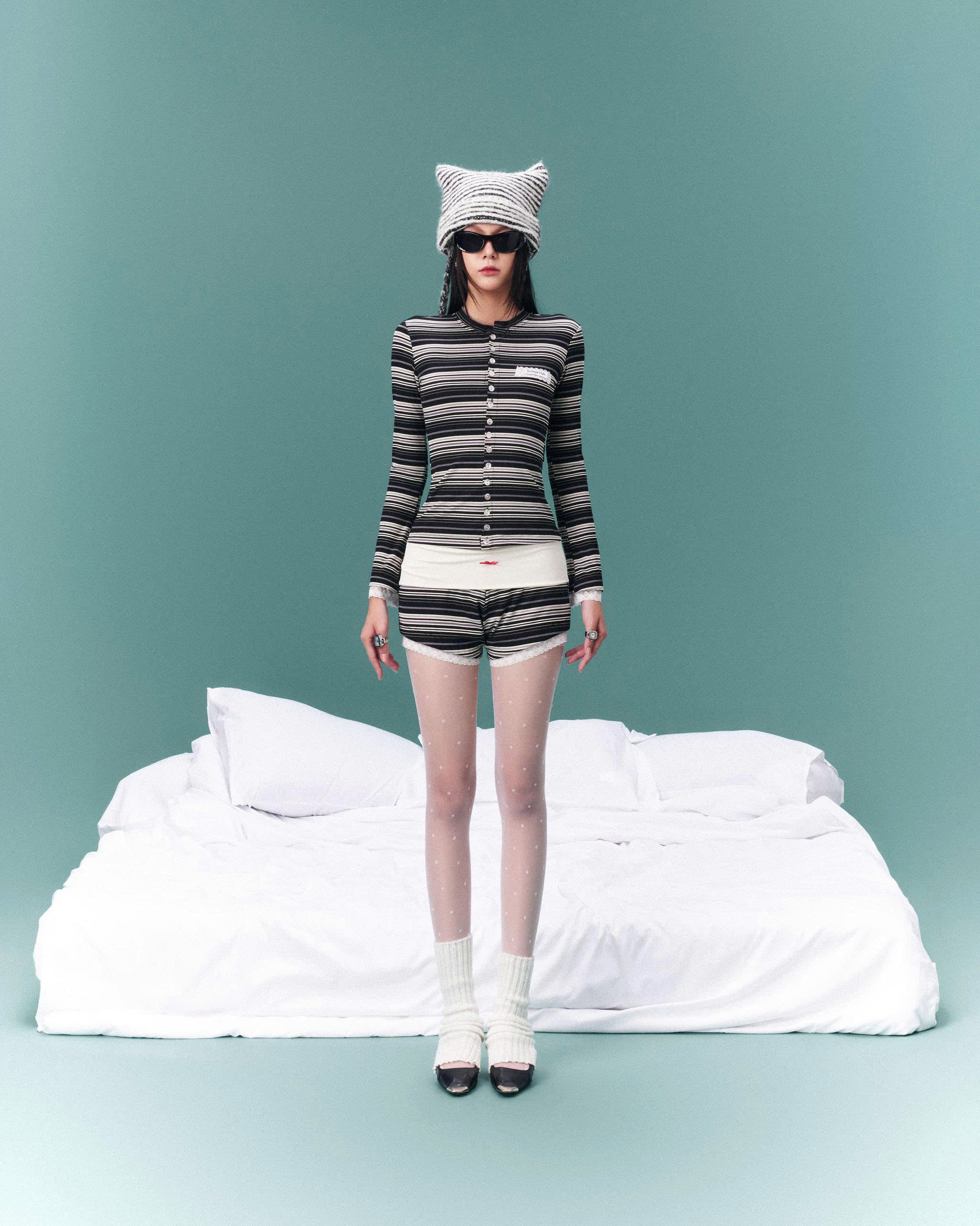 Áo thun len dệt sọc đen xám tay dài - Stripe Chucky Top