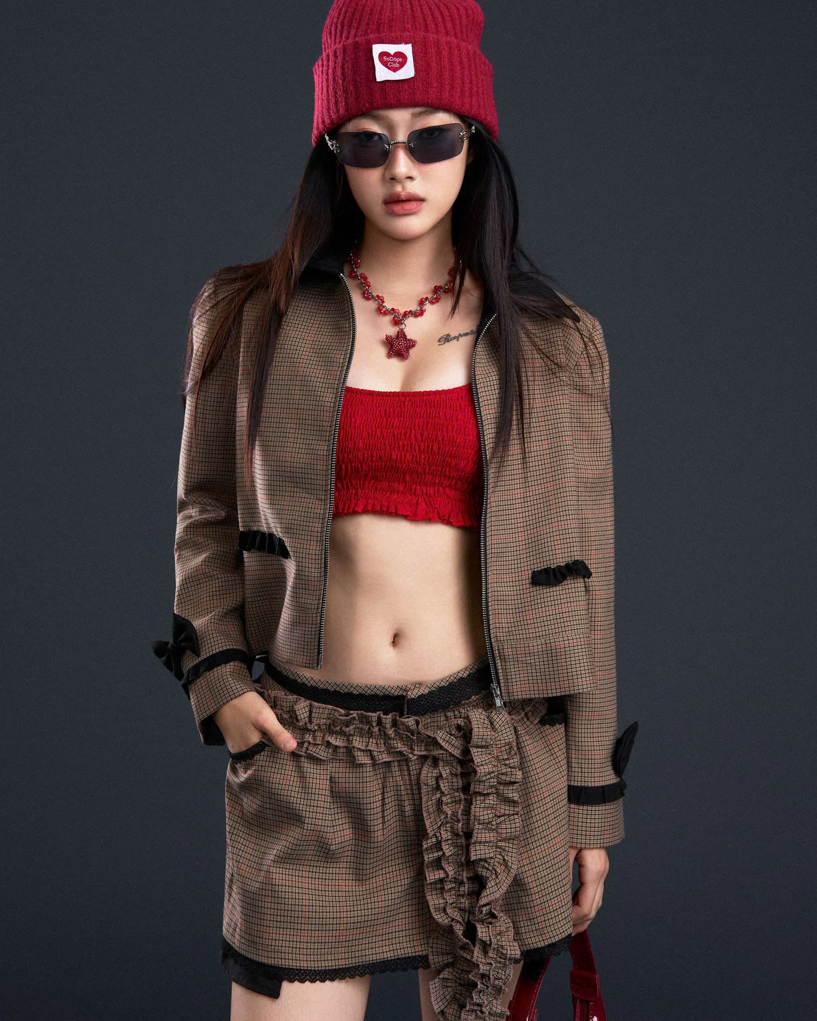 Chân váy ngắn sọc caro phối ren - Vietdope Skirt